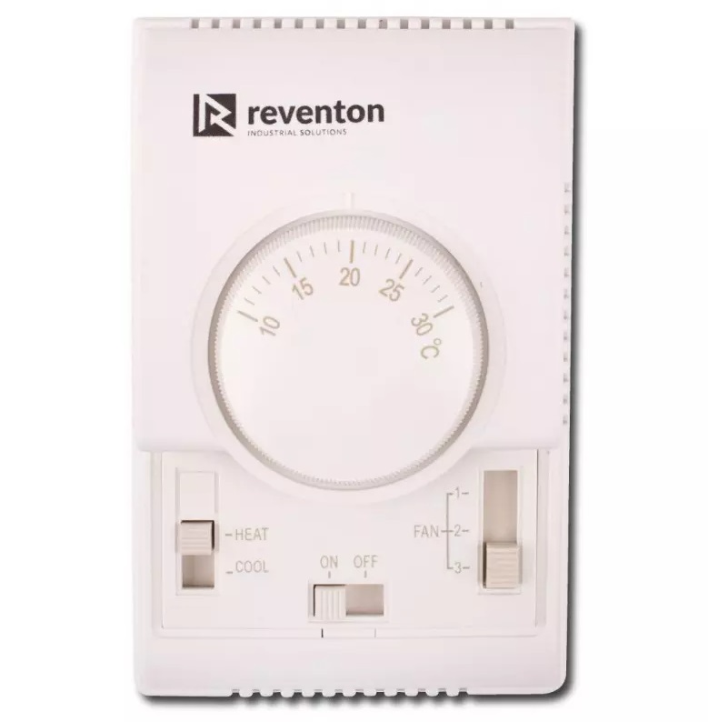 Blowair 3-trins omskifter til Blowair kaloriferer. Omskifteren styrer hastigheden og driften af blæseren i kaloriferen. Med sin indbyggede termostat stopper kaloriferen, så snart den ønskede rumtemperatur opnås. Omskifteren kan også bruges til andre blæser, kanalventilatorer eller varmeflytnings systemer, hvor en rumtermostat er aktuel.