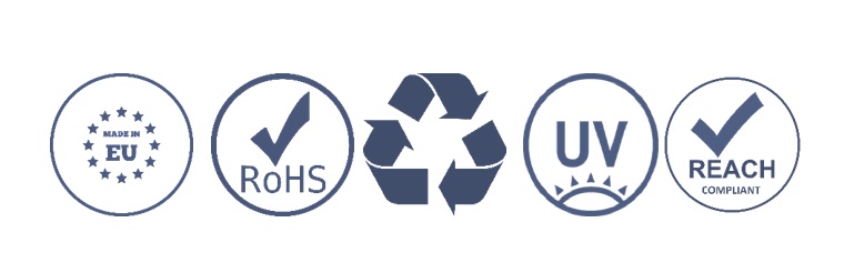 For udendørs brug, UV-modstandsdygtig plast.