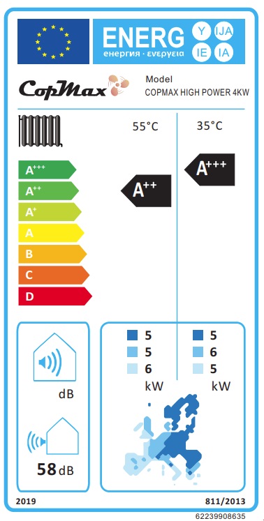 1 stk CopMax High Power 4 kW L/V varmepumpe med 3 kW indbygget el-patron.