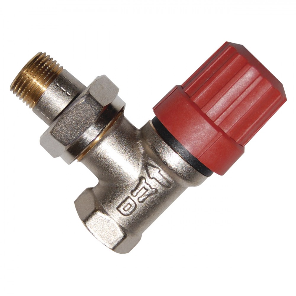 Vinkelløbende radiatorventil med forindstilling for optimal fordeling af vandet i varmeanlægget. Forindstillingen gør det muligt at indstille den korrekte vandgennemstrømning.