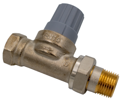 Ligeløbende radiatorventil med forindstilling for optimal fordeling af vandet i varmeanlægget. Forindstillingen gør det muligt at indstille den korrekte vandgennemstrømning.