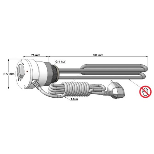 El-patron 2 kW med 11/2″ gevind og 1,5 meter ledning, tilslutning 230V.