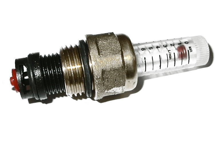 Reservedel til gulvvarme fordelerør. Flowmåler med 1/2″ gevind til max. 2 bar, Flowmeter 6 L/min.