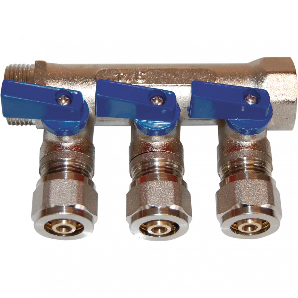 Fordelerrør med afspærring 3 afgange Godkendt til drikkevand