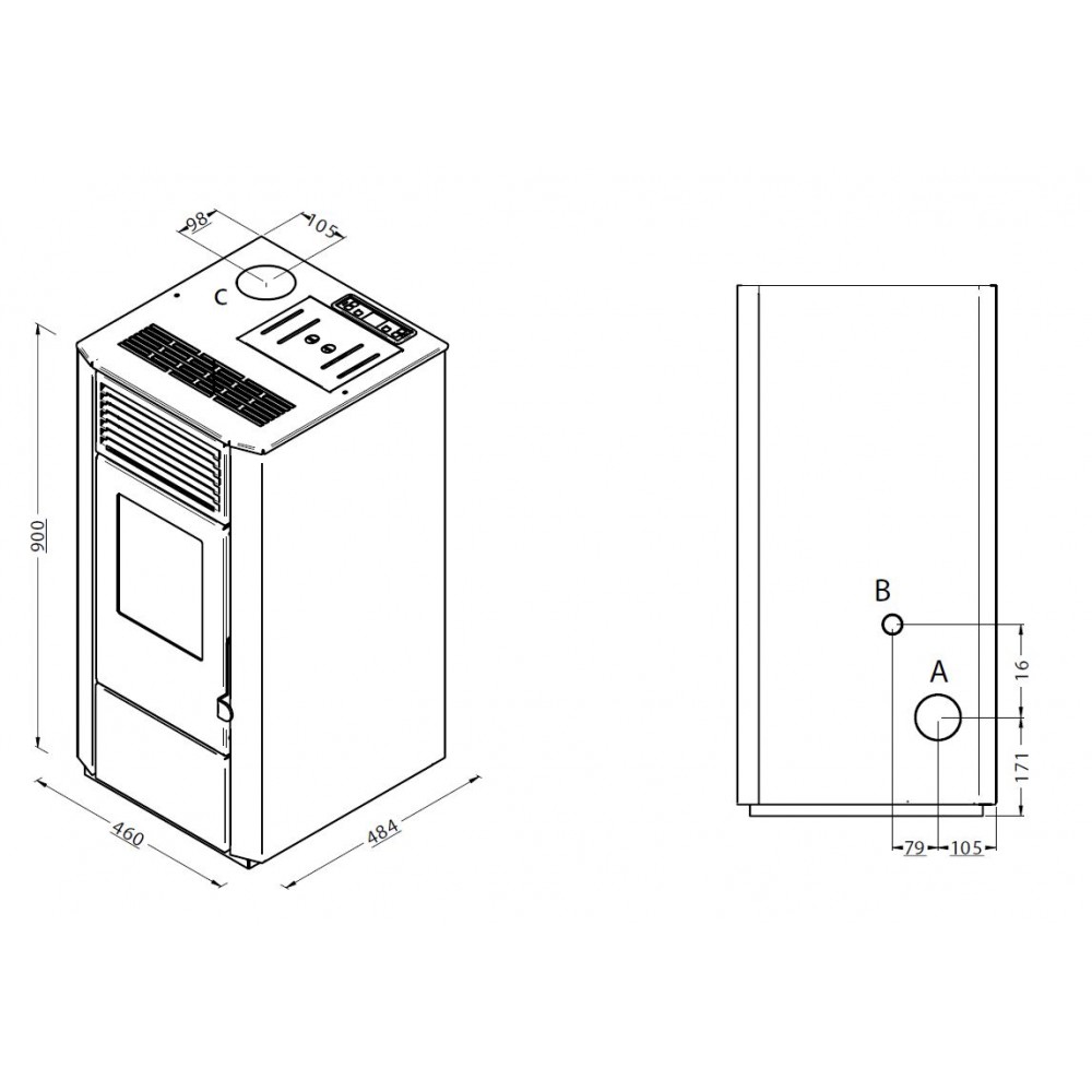 Irina pillebrændeovn universal røgafgang – Opvarmer ca. 60 -120m²