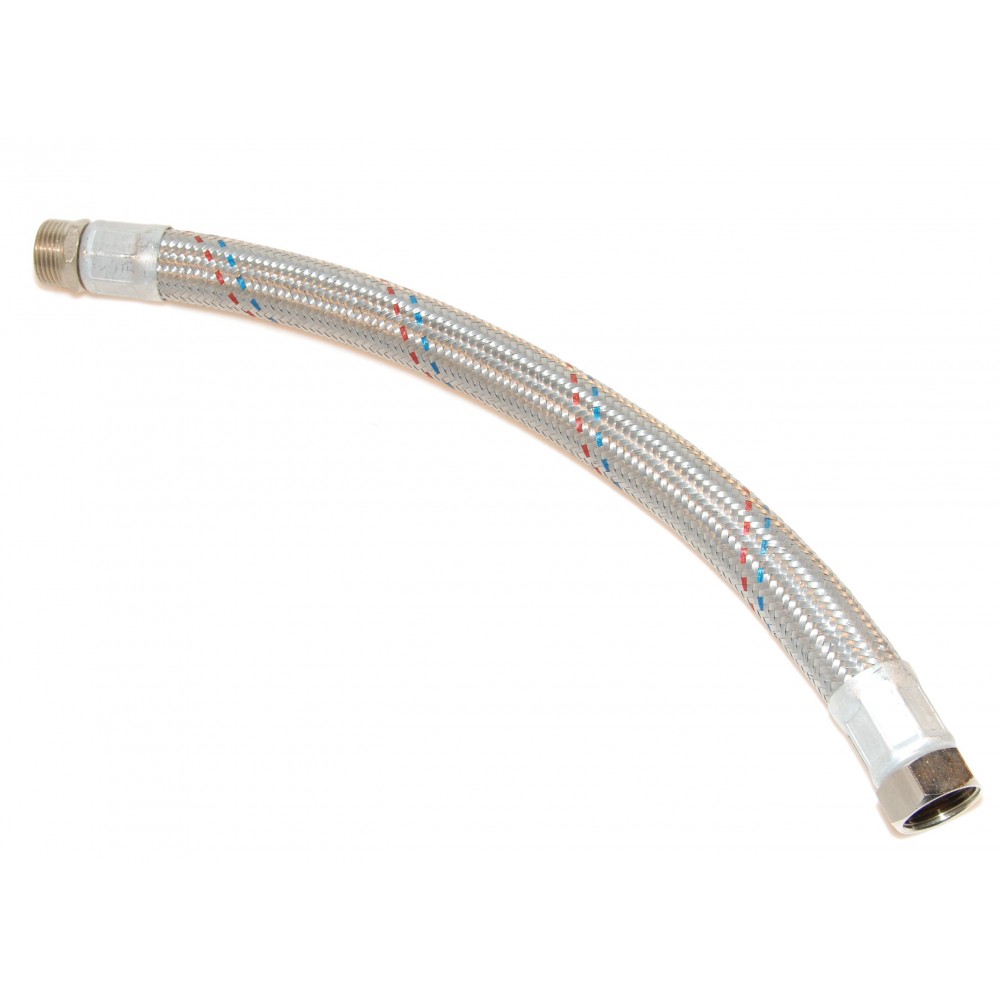 Til varmeanlæg, ikke til drikkevand. Kedelslange med 3/4″ omløber og nippel. Max 10 Bar og 95 grader. Med fast udvendigt gevind i den ene ende, og omløber med indvendigt gevind i den anden.