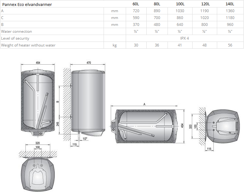 Pannex Eco el vandvarmer 140 Liter