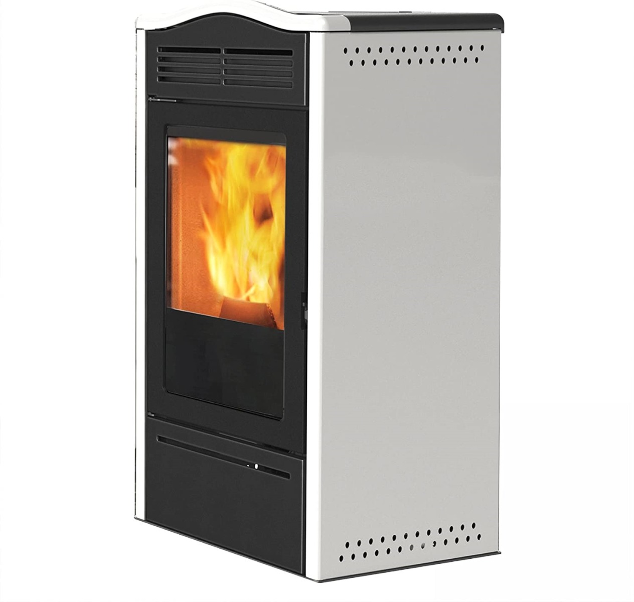 Piro hvid/sort pillebrændeovn 2,4 – 7 kW – Opvarmer ca. 60 -120m²